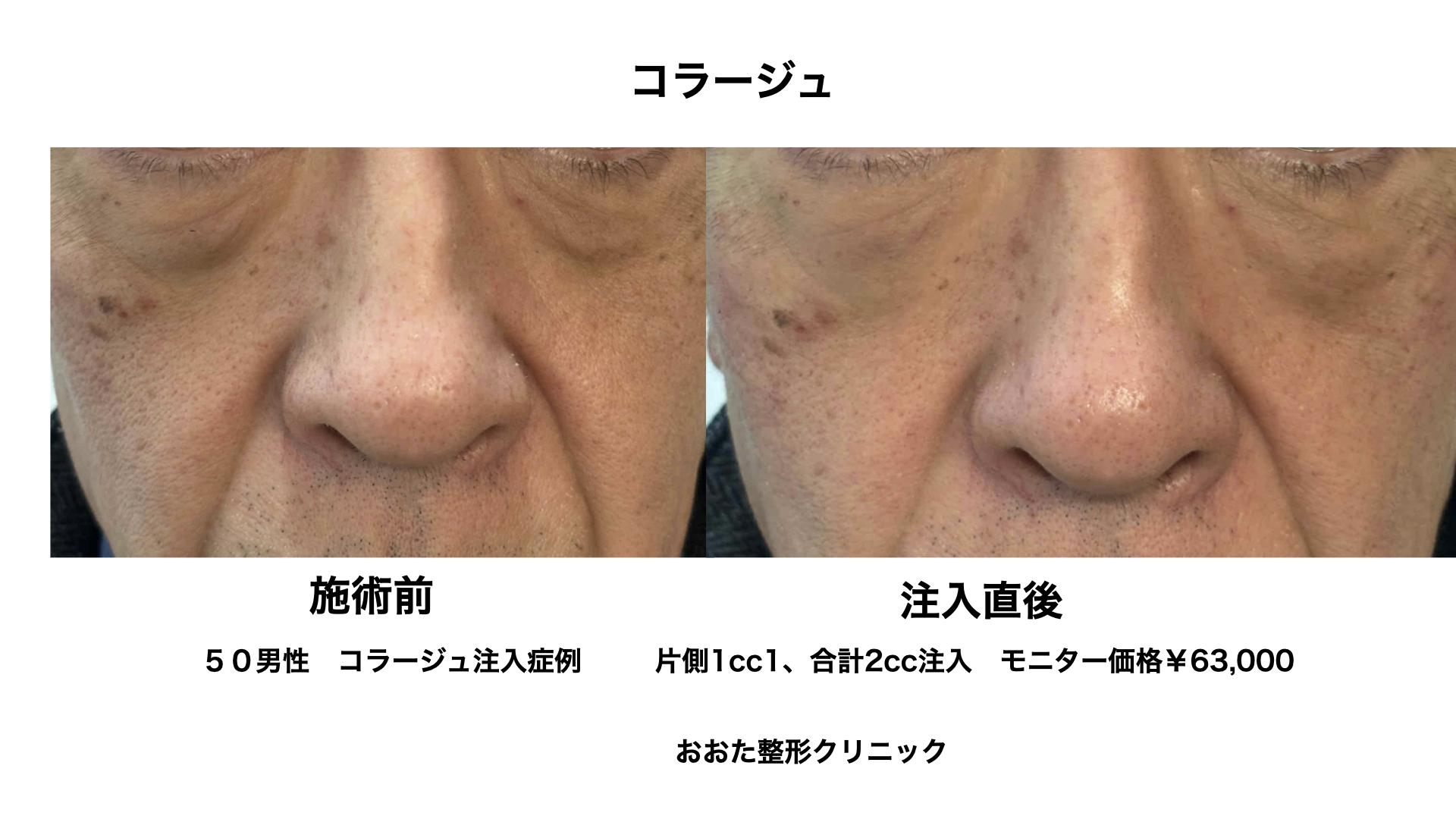 ヒアルロン酸ではボリュームは出ますが、ボタッとした印象となるので、コラージュをお勧めしました。
