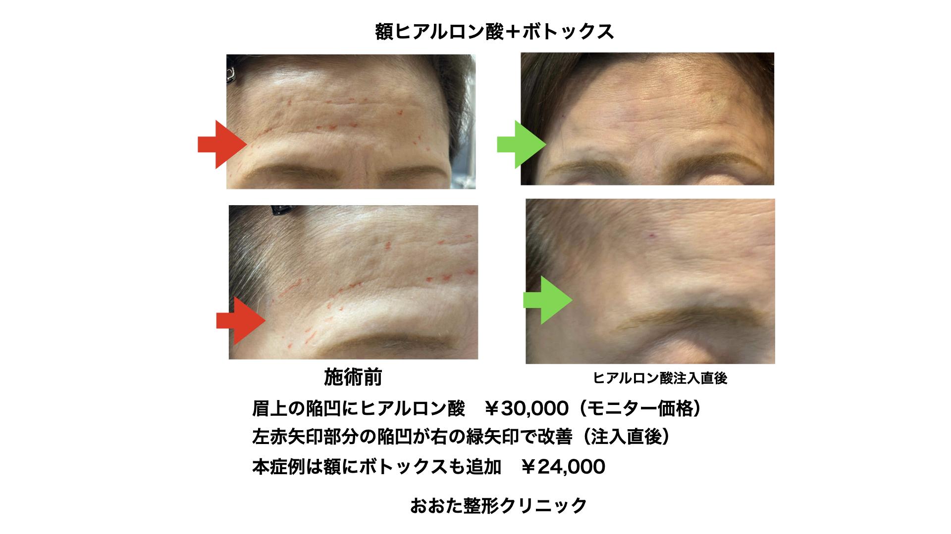 特に額のシワが深くなって目立っていたのと、それに伴って眉上周囲のくぼみが気になってきたとのことでした。