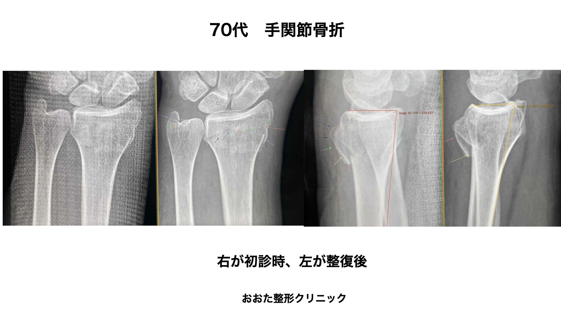 70代女性。転倒して手をついて受傷。