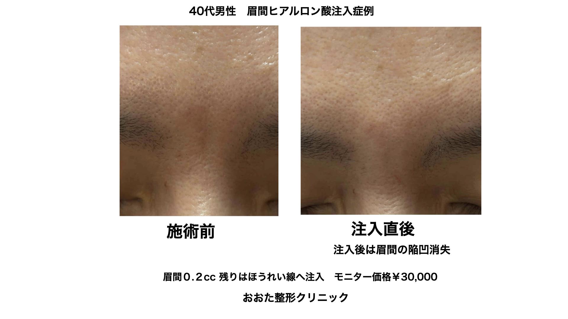 40代男性。眉間のシワに、ボトックス注射を1か月位前に施行しています。