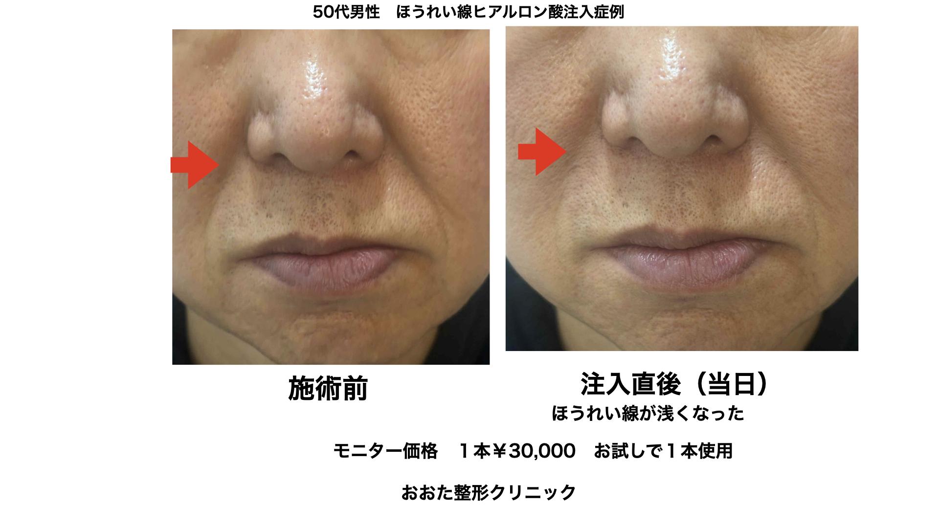50代男性。ほうれい線が気になるので、ヒアルロン酸試してみたいと来院。