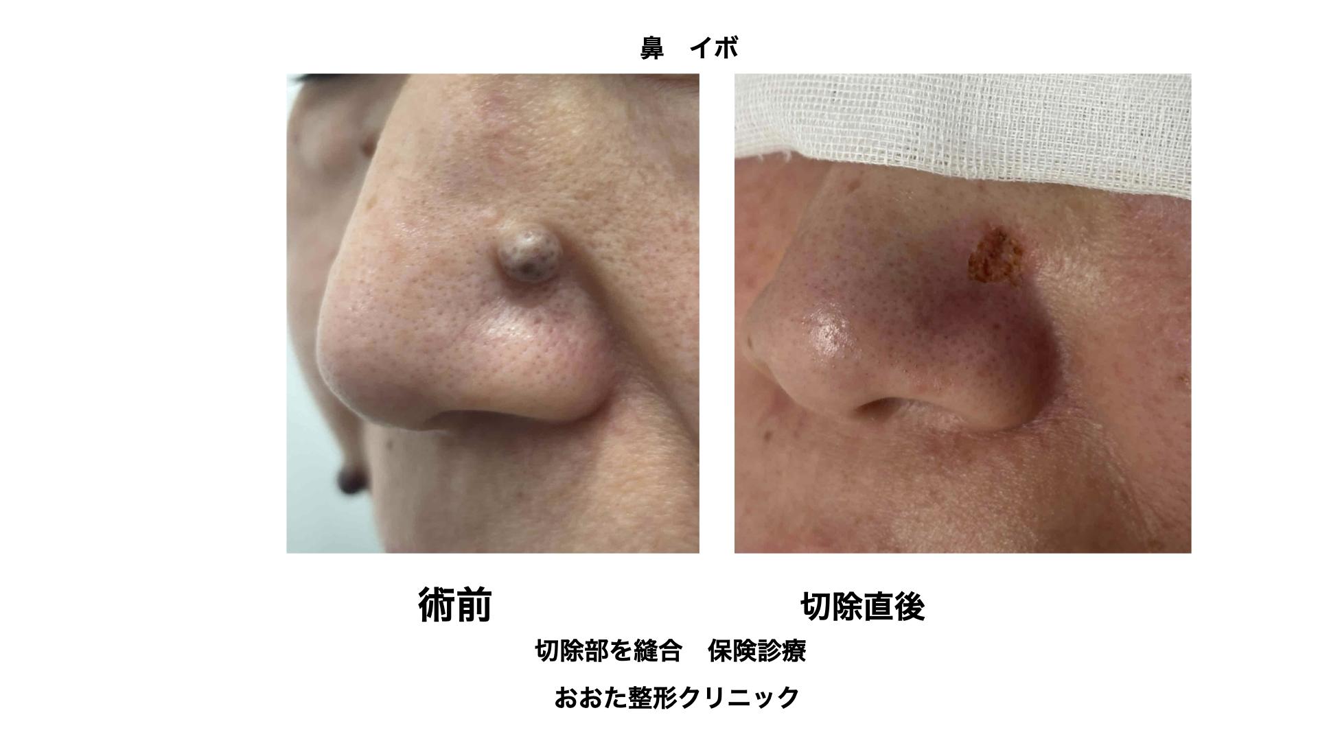鼻のイボ。前回の頬と同じく、いやそれ以上に縫合は困難な部位です。