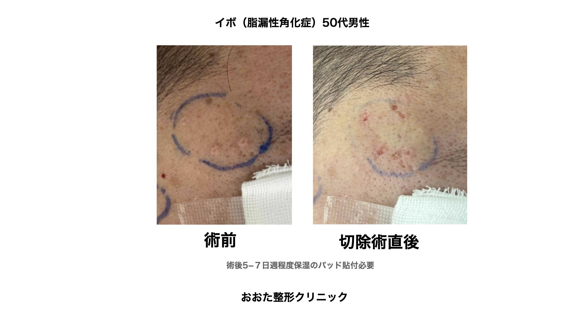 50代男性。顔に色のない出来物が多発。