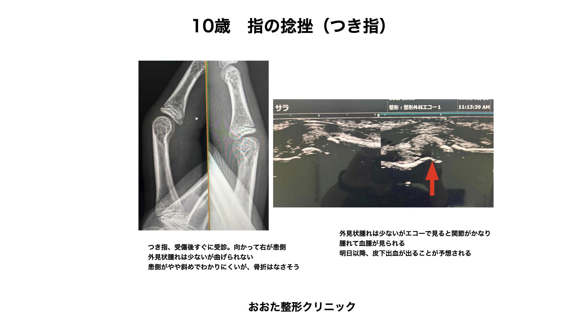 つき指(指の捻挫)、エコーで重症度判定