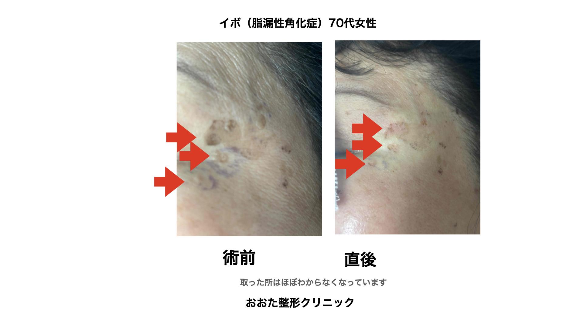 隆起している、イボ(脂漏性角化症)は、炭酸ガスレーザーで蒸散して除去しています。